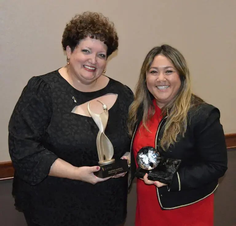 Caption for ATHENA2022.jpg: Heather Martell, left, was named the recipient of the 2022 ATHENA Leadership Award while Olivia Hill, right, was named the recipient of the 2022 ATHENA Young Professional Leadership Award.